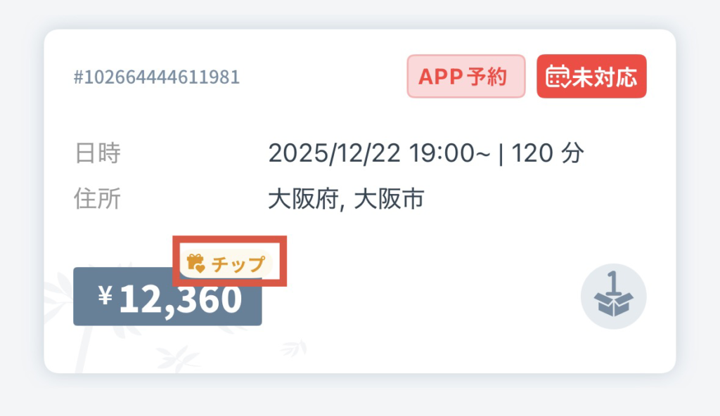 リクエスト送信時に、チップをお支払いいただいている場合は、【チップ】と表示されます。