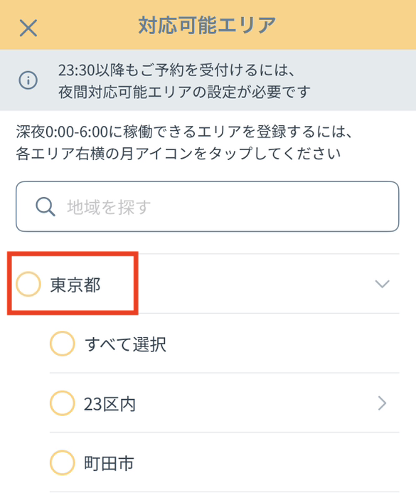 また、すべて選択となっている対応エリアへ新しくエリアが追加された場合、新エリアは自動で対応エリアとなります。