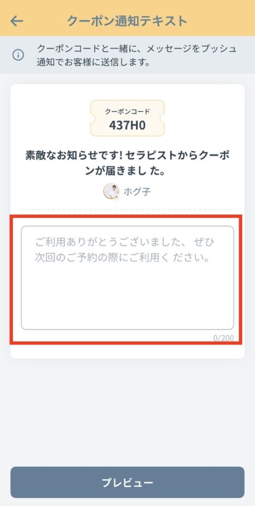 セラピストご自身でアプリから「あなただけの専用クーポン」の発行が可能です。