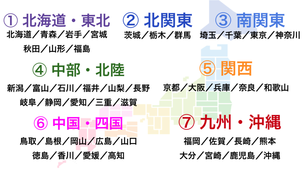 全国を以下の7エリアに分類し、エリアごとに表彰を行います。