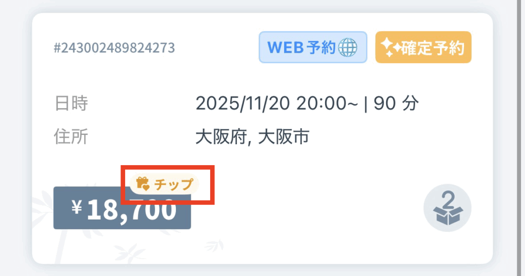 チップをお支払いいただいている場合は、【チップ】と表示されます。