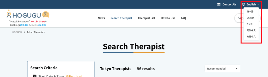 海外からのお客様のご利用が増えてきたことを受け、当ウェブサイトでは英語・韓国語・中国語でをご利用いただけるようになりました。