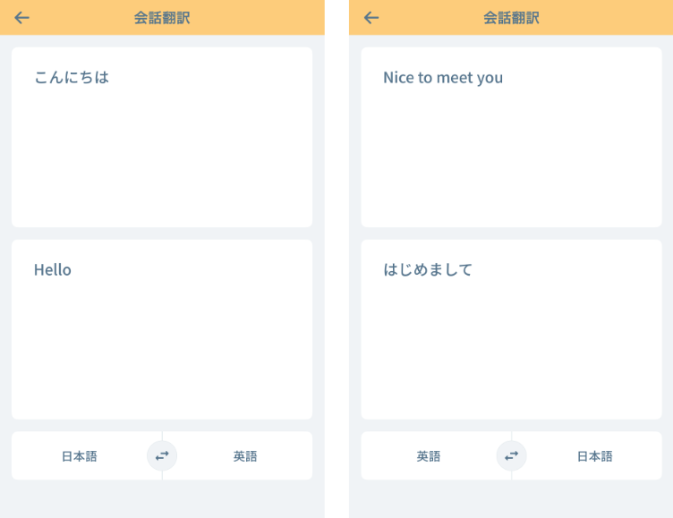 マイクで話した音声をリアルタイム翻訳できる会話翻訳機能(Speech-to-Text)を実装。