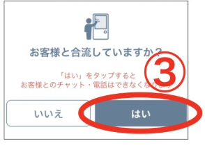 ※「はい」を押下後はお客様とのチャット、電話等ができなくなります。必ず合流後に押下してください。