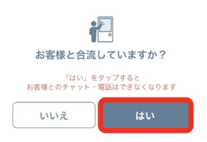 その後、お客様と合流していますか?と表示がでるので「はい」をタップ。