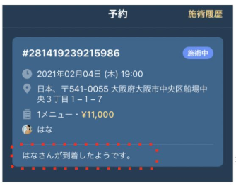 施術前にアプリで利用規約に同意いただく必要がございます。 - カスタマーアプリでのステータス表示