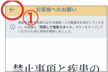 必ず注意事項を確認してもらいお客様の同意の上、施術スタートをお願いします。