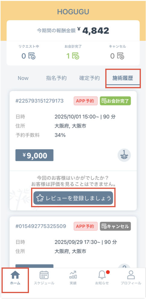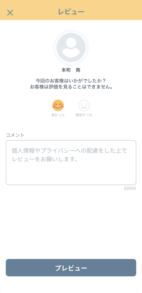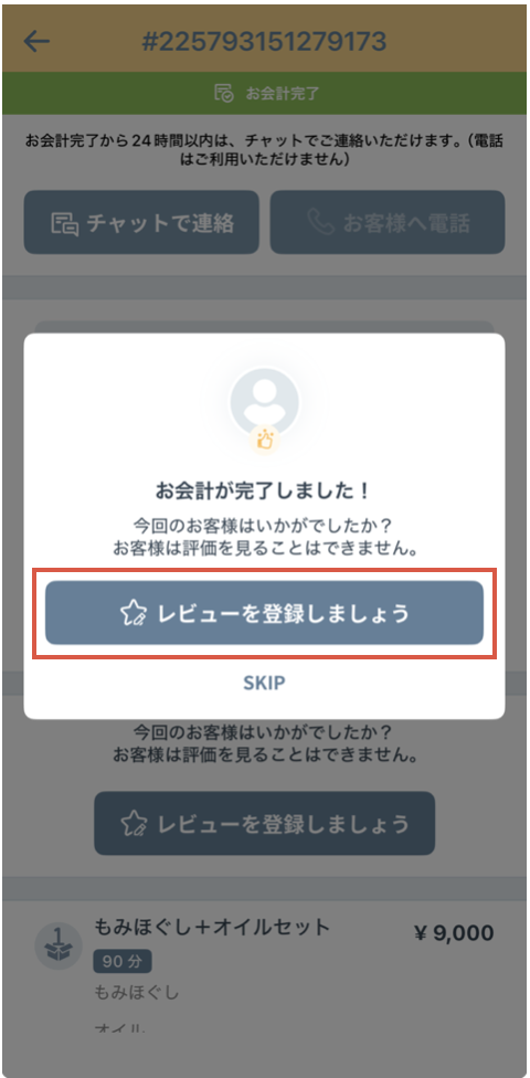 - お会計後、お客様へのレビュー投稿の画面が表示されます。