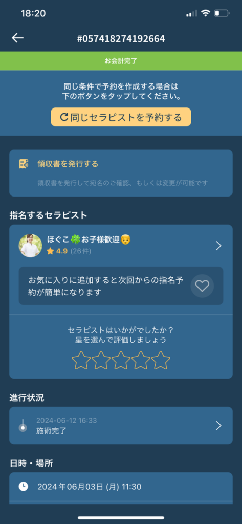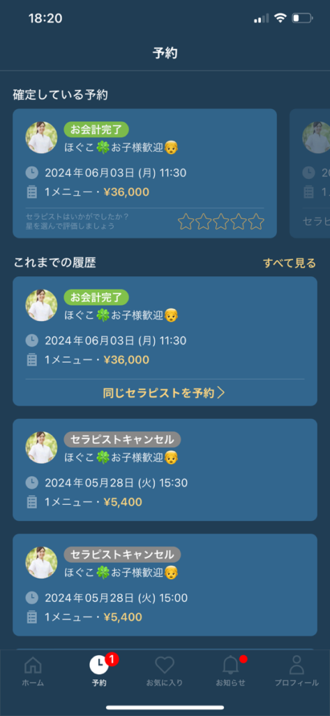 ①「予約」予約履歴を開く
