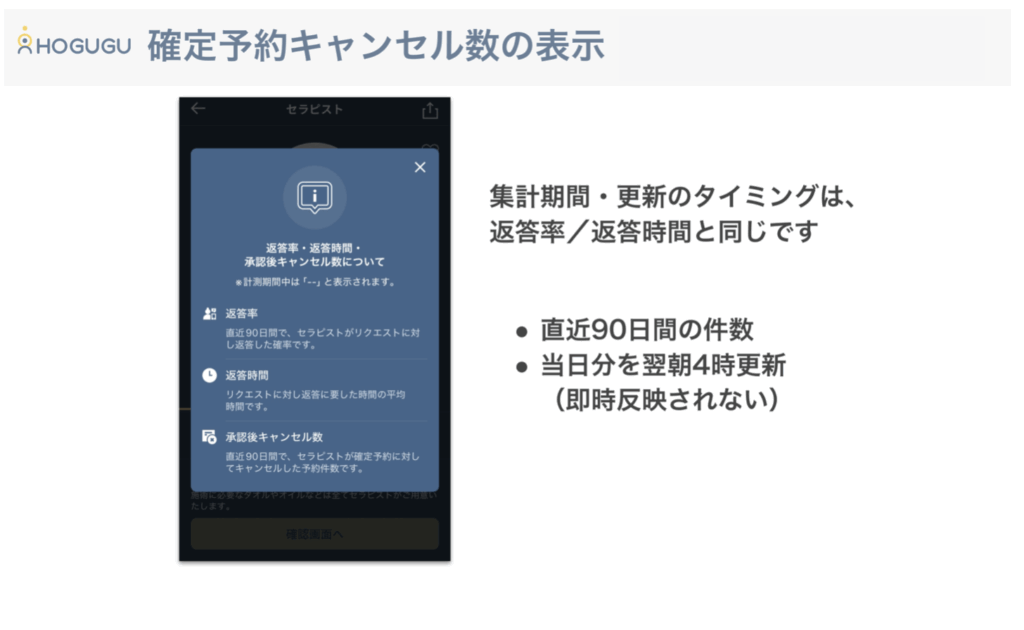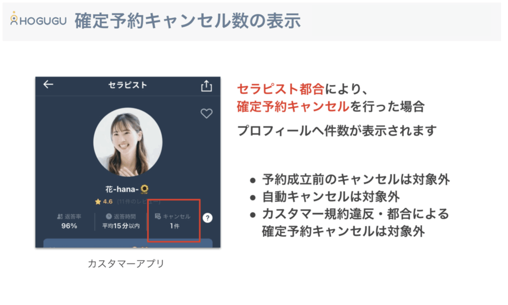 セラピストアプリからもご予約キャンセルの操作が可能でございます。